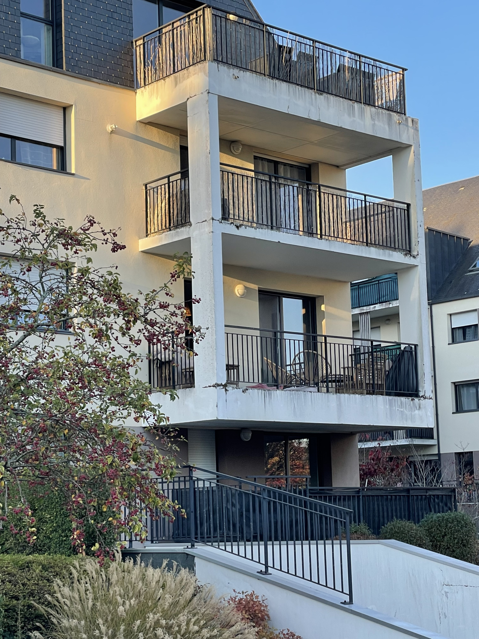 L'appartement se situe au premier étage et comporte une entrée avec placard, une pièce de vie avec coin cuisine, un balcon, une chambre avec salle d'eau privative et un wc.