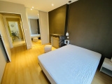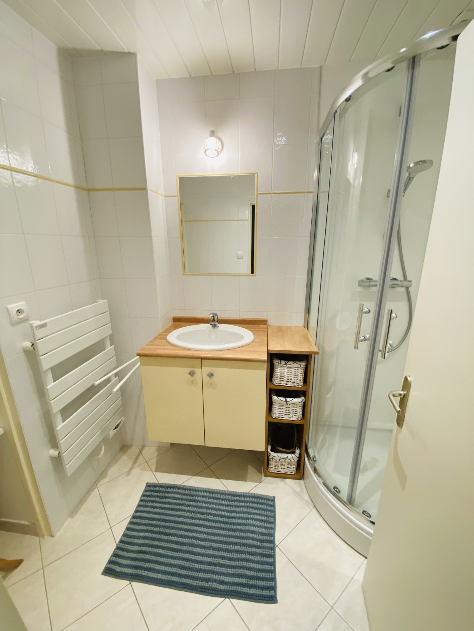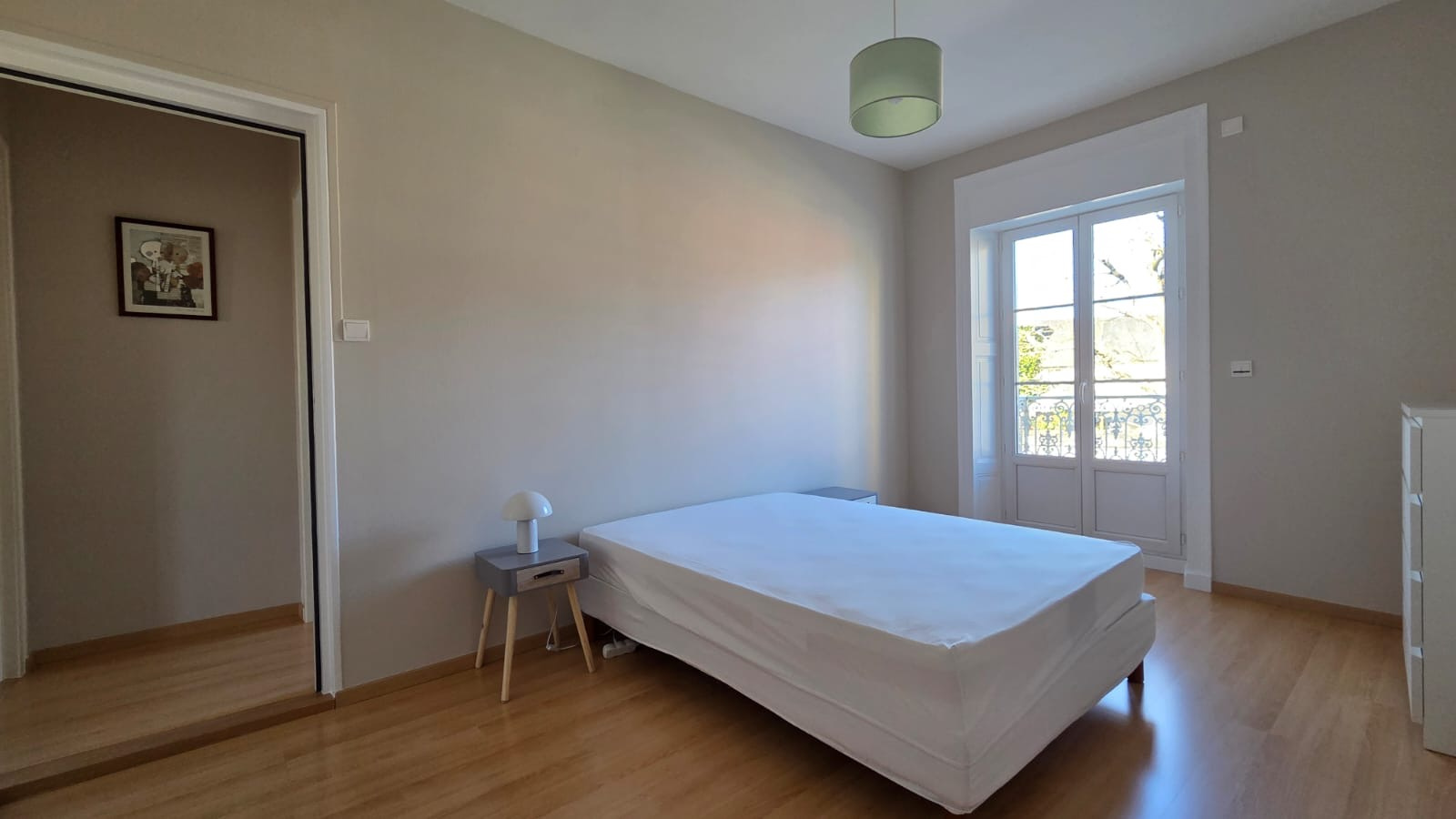 L'appartement se compose d'un séjour avec une cuisine ouverte aménagée et équipée, un dégagement desservant une salle d'eau, un wc et deux chambres dont une avec placard.