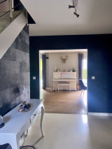 Vous serez séduits par ses espaces comprenant une cuisine aménagée et équipée, un salon-séjour lumineux avec un accès direct sur la terrasse. Le salon-séjour de 38 m² est agrémenté d'un poêle à bois. Une suite parentale avec dressing et salle d'eau séparée, un bureau pouvant être utilisé comme deuxième chambre, une deuxième salle d'eau et des w.c complètent ce niveau.