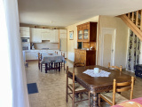 Cette maison se compose d'une vaste pièce à vivre de plus de 45 m² agrémentée d'une cheminée foyer ouvert. Une cuisine ouverte aménagée et équipée, une arrière-cuisine, w.c indépendant, un cellier et cave attenante.