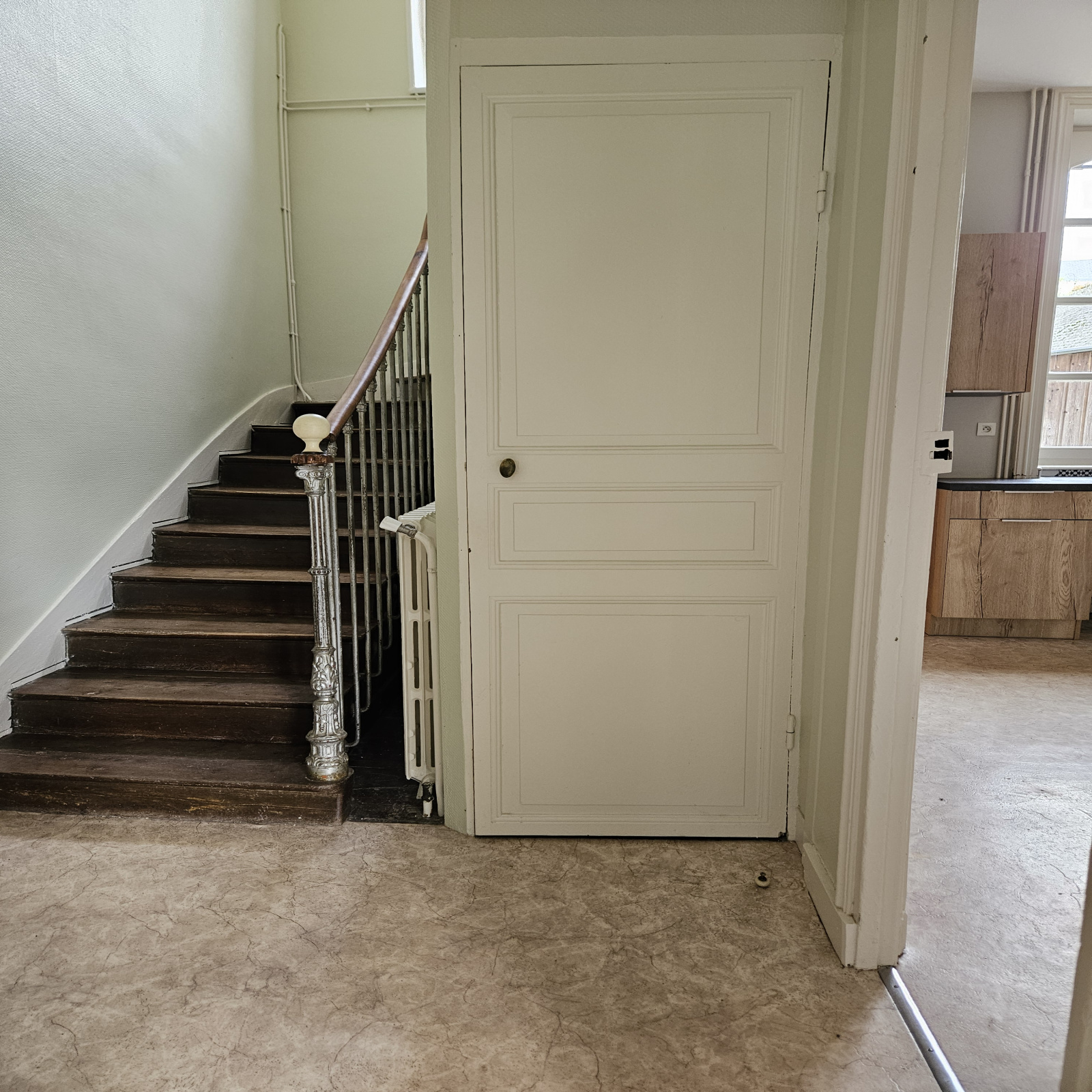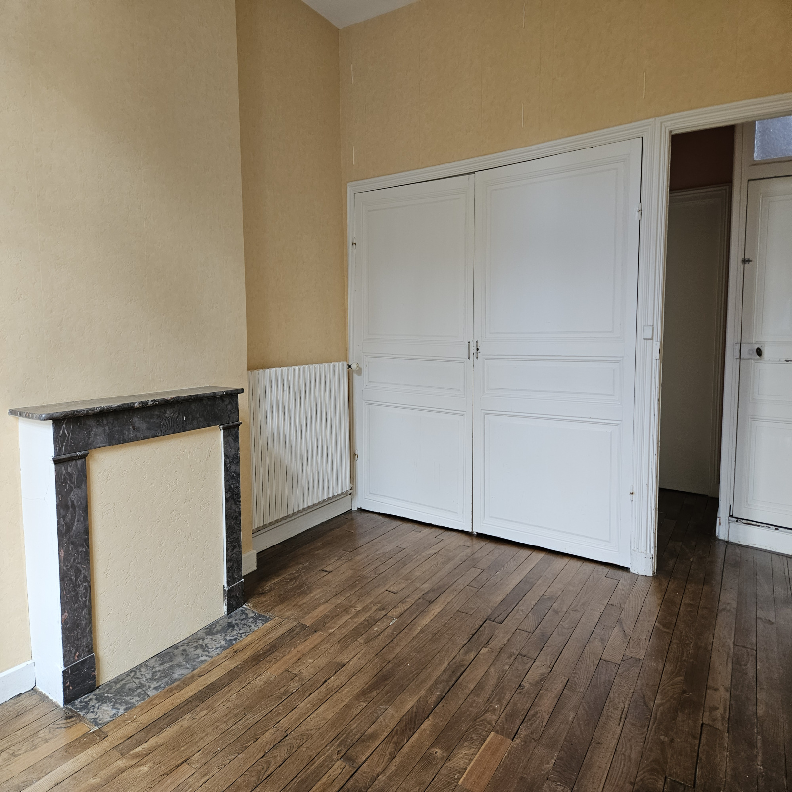 Celle ci offre : une entrée, une cuisine aménagée equipée avec placard, un séjour lumineux avec cheminée en marbre , WC.