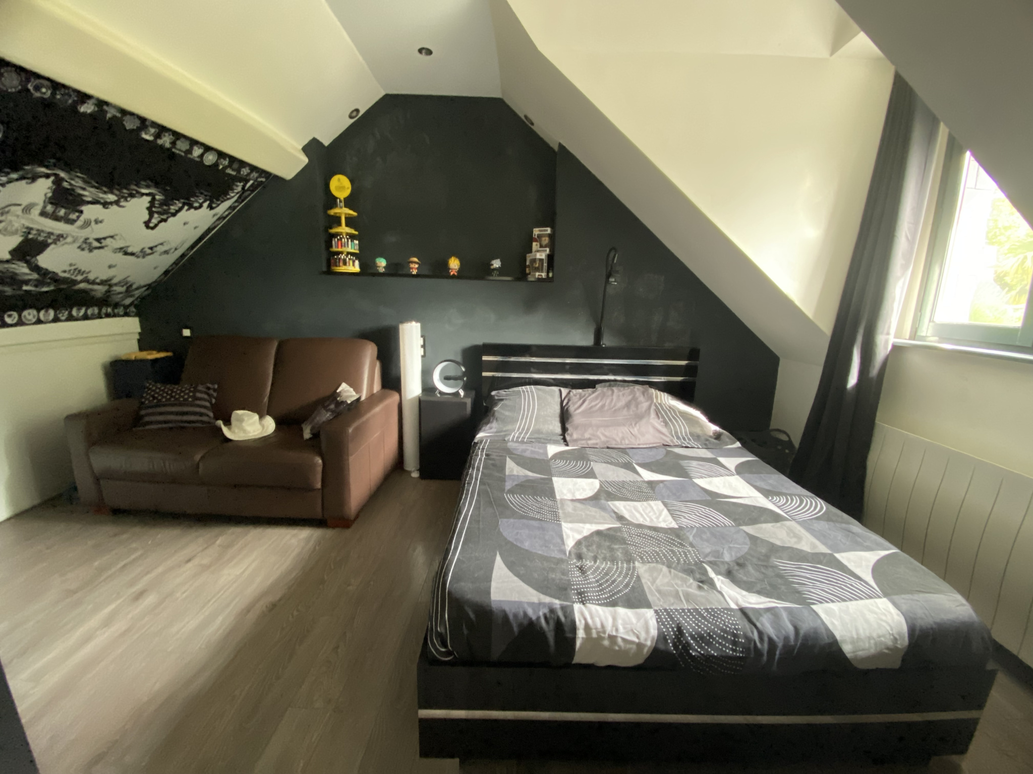 À l’étage, une mezzanine distribue deux chambres avec placards, ainsi qu’une suite parentale comprenant une salle d’eau privative, un dressing et un accès à l’extérieur.