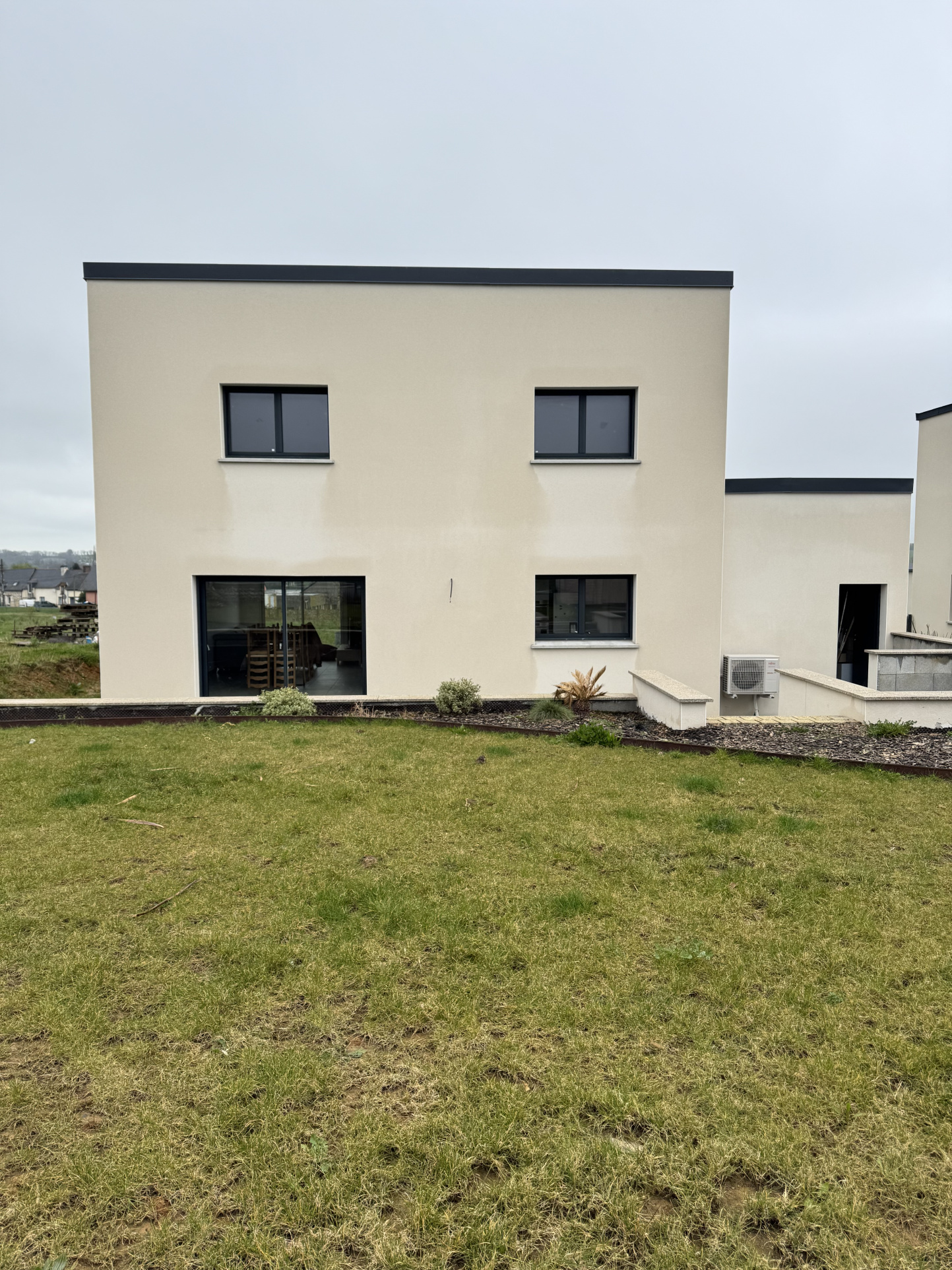 Le tout est implanté sur un terrain de 470 m². Les aménagements extérieurs restent à finaliser.