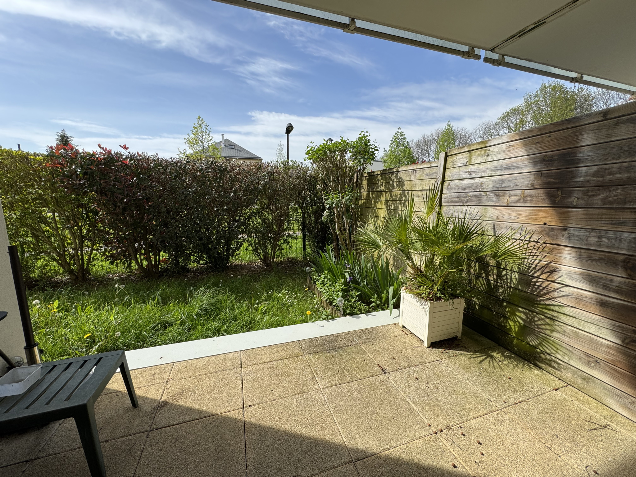 L'appartement propose une entrée avec placard, une cuisine aménagée et équipée ouverte sur le salon, un salon-séjour avec accès à un jardinet privé et terrasse, un dégagement, deux chambres avec placards, une salle de bains et des toilettes séparées.