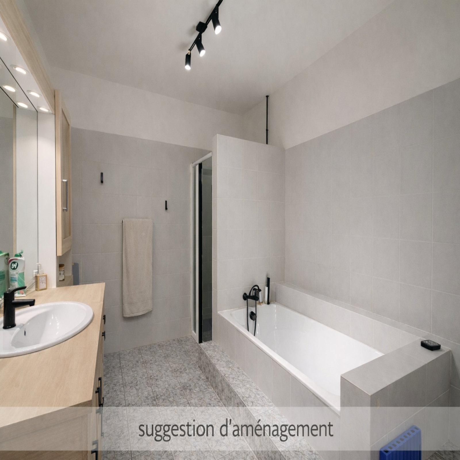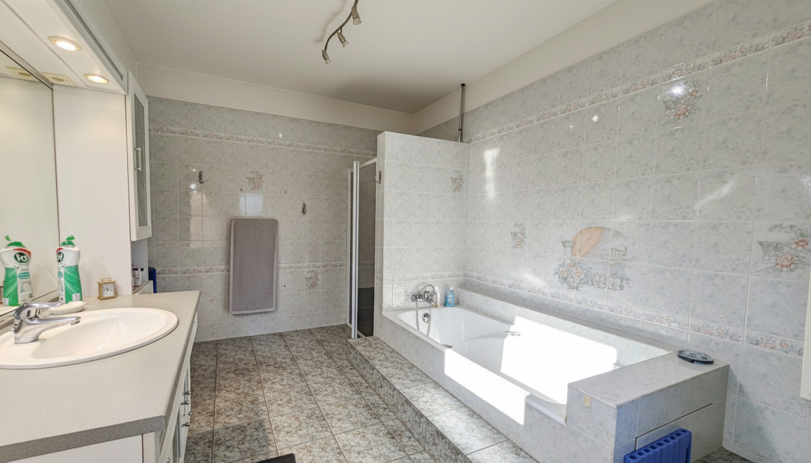 Le couloir avec placards dessert un wc ainsi qu'une suite parentale de 28m² avec spacieuse salle de bains comprenant douche et baignoire.
