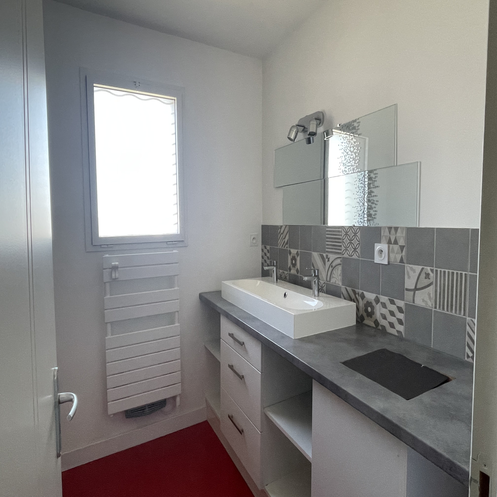 Cette maison est composée d'une belle pièce de vie donnant sur le jardin exposée sud, une cuisine ouverte entièrement aménagée et équipée, un espace buanderie, une jolie suite parentale au rez-de-chaussée avec son dressing et sa salle d'eau privative.